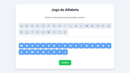 Aprenda o alfabeto de forma divertida! Jogos educativos e interativos para crianças em fase de alfabetização.
