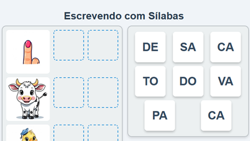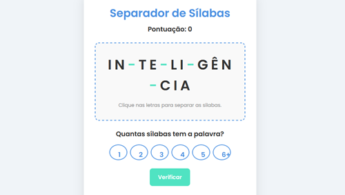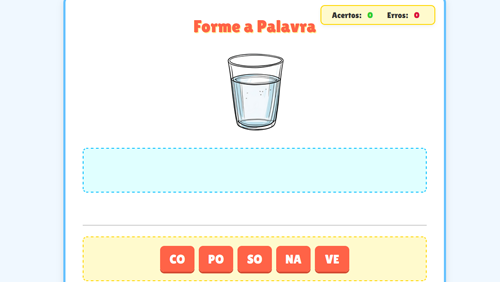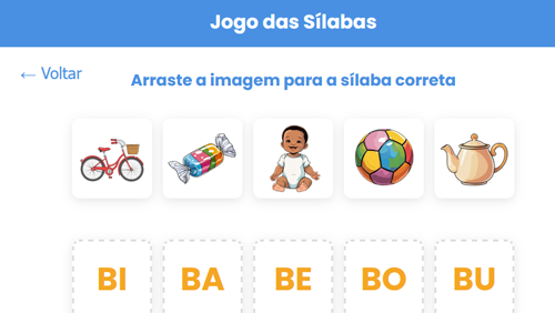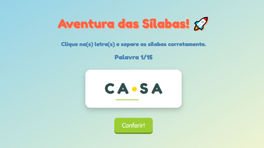 Descubra o mundo das sílabas! Coleção de jogos educativos para aprender a formar e dividir palavras, auxiliando no processo de alfabetização.